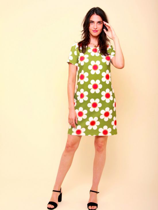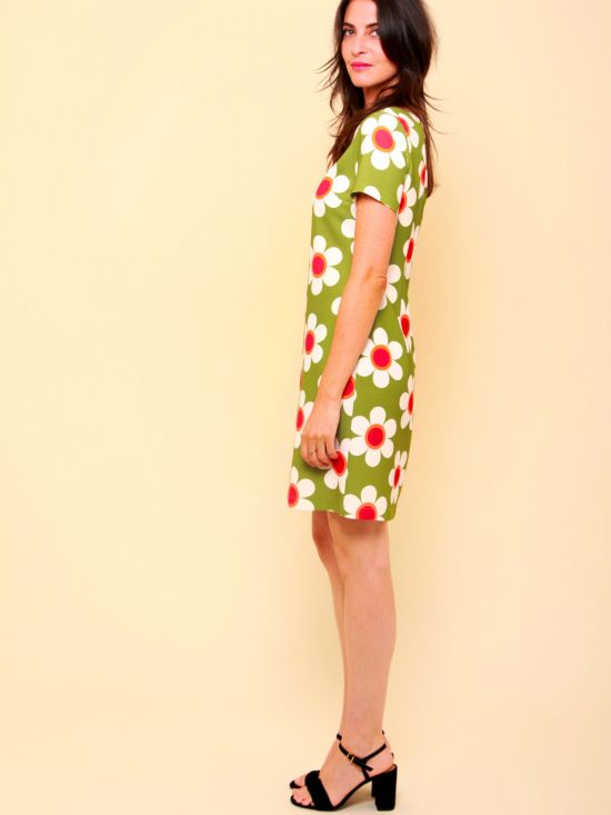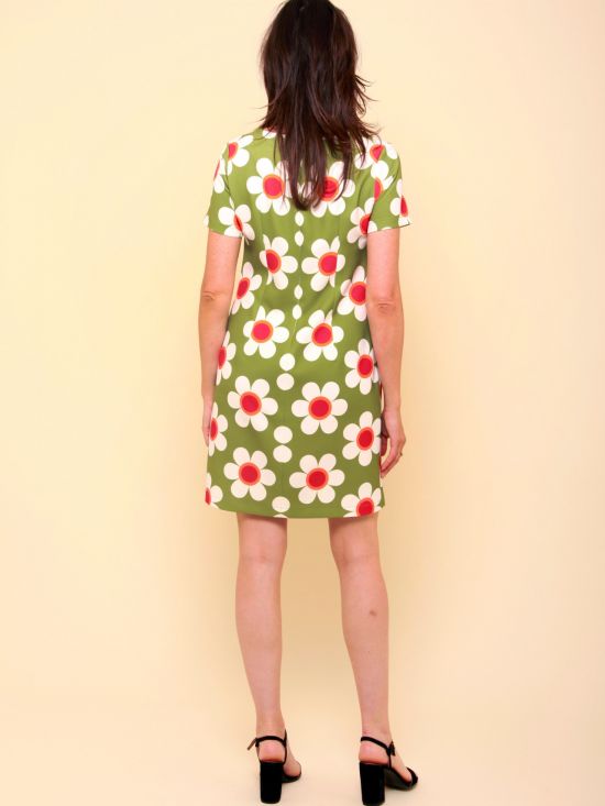 Robe rétro 70's fleurie col rond manches courtes Hippocampe