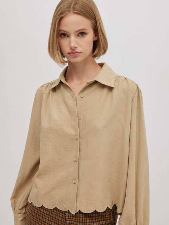 Chemise col et bas festonnés brodés Miss Carla.
