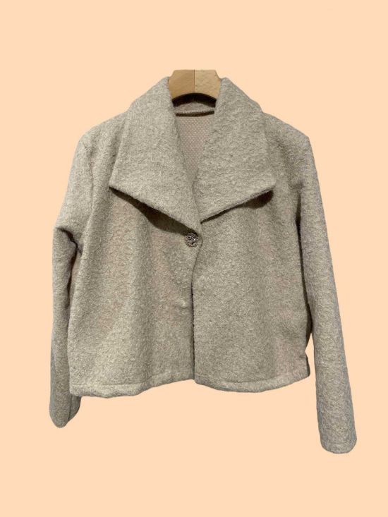 Veste courte façon laine bouillie un bouton bijoux