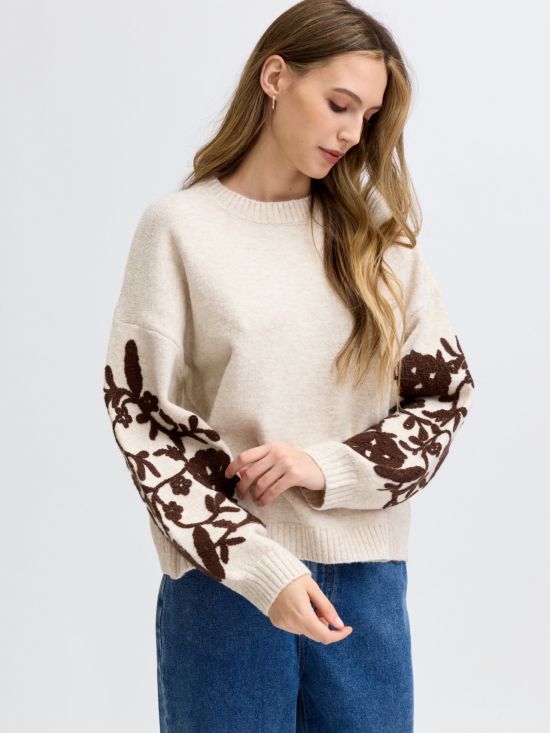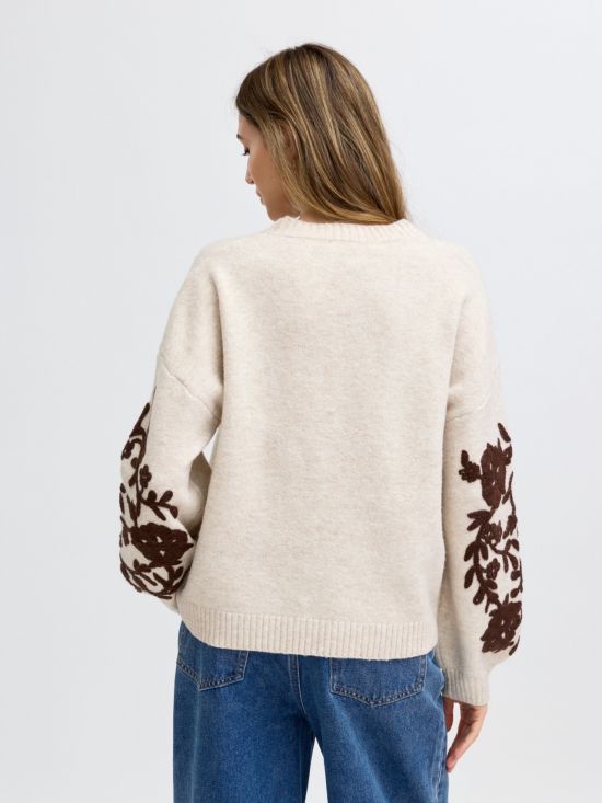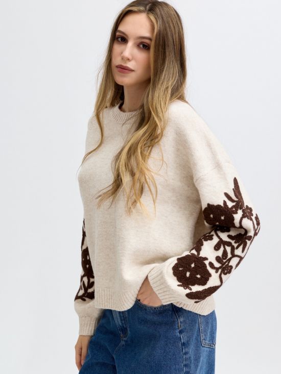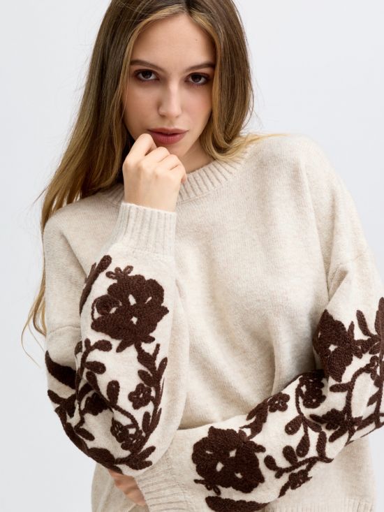 Pull col rond manches longues avec fleurs brodées Luce-Shop Collection.