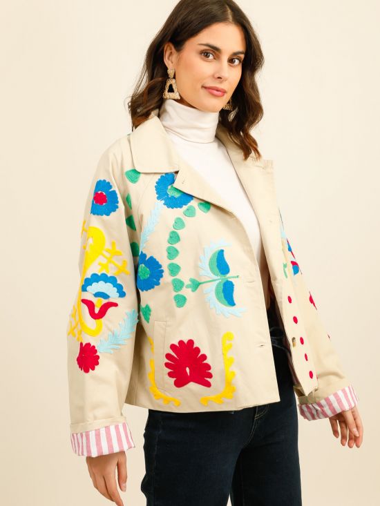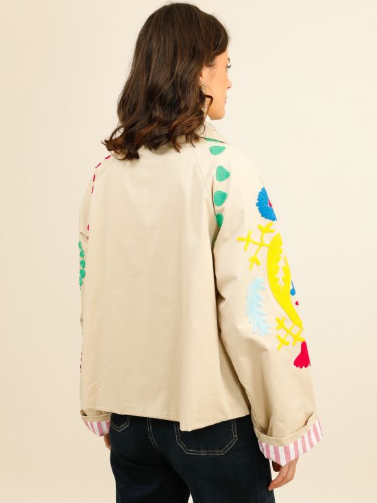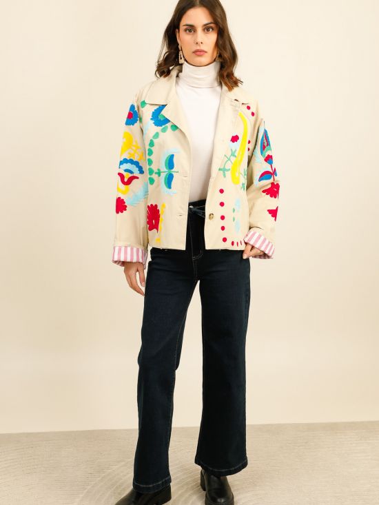 Veste toile broderies multicolores Inspiration Studio