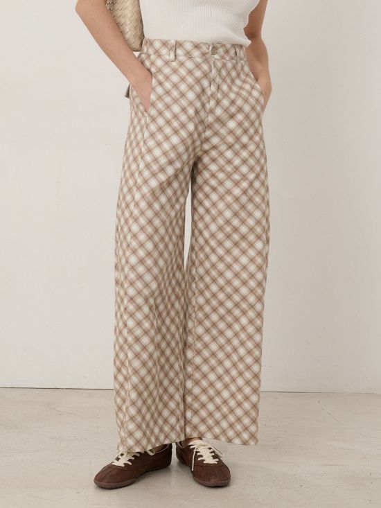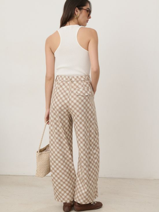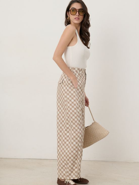Pantalon wide leg taille haute à carreaux Luce-Shop Collection