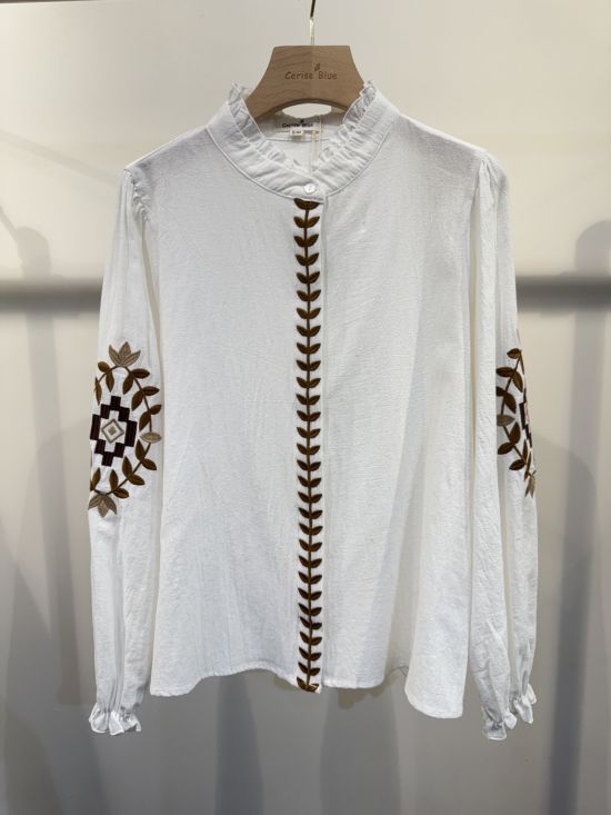 Chemise brodée aux manches et à la boutonnière Cerise Blue.