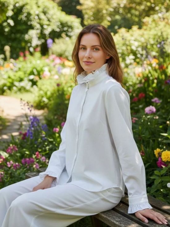 - Bas de manches froncés et fermés par un bouton