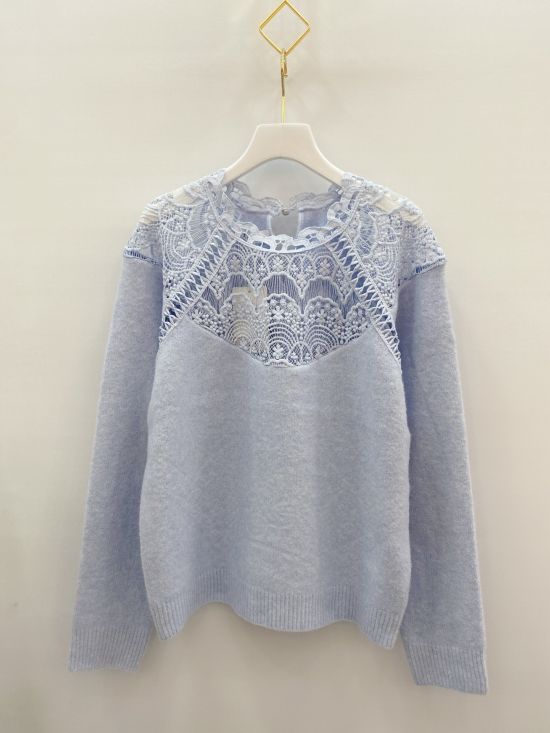 Pull en maille mousseuse et dentelle ajourée Kilky