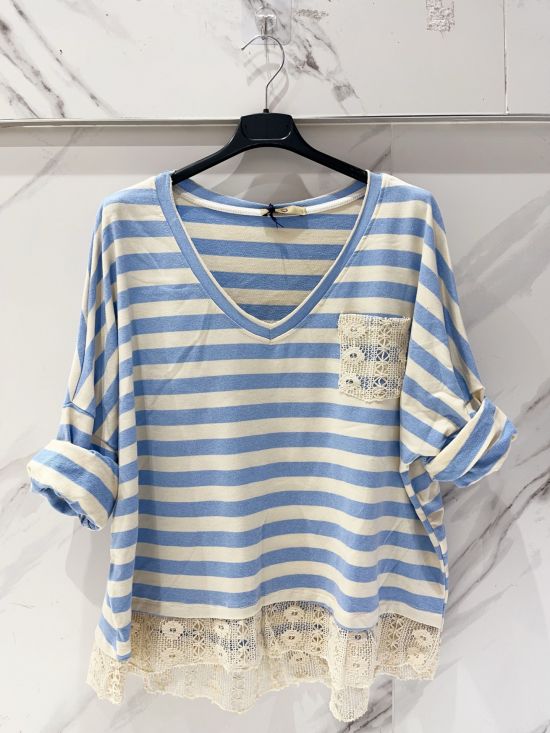 Top marinière oversized col V bas crochet Miss Carla