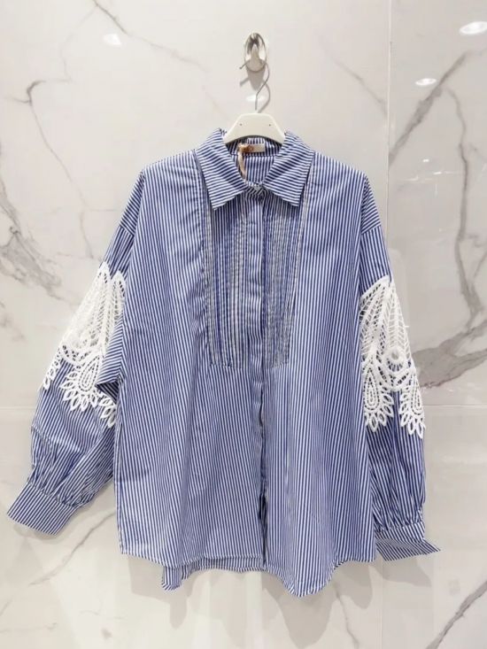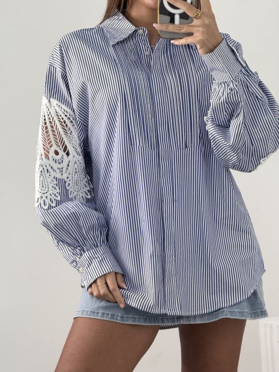 Chemise rayée manches longues brodées ajourées Carla Giannini.