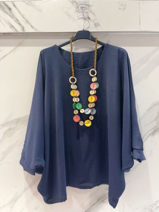 Top oversized col rond manches chauve souris Miss Carla