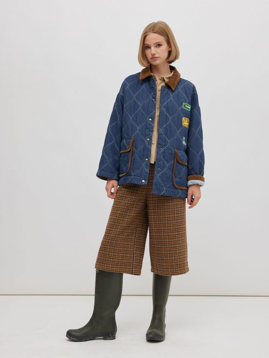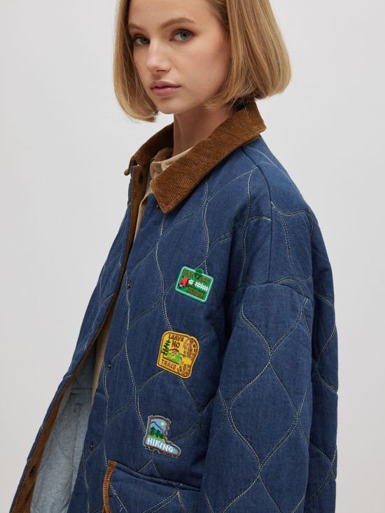 Veste matelassée denim, col velours et patch Miss Carla