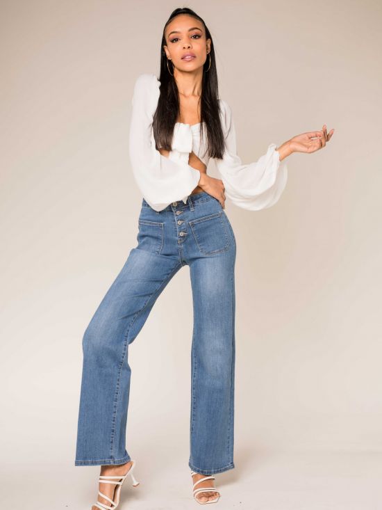 Jean flare stretch taille haute poches plaquées Nina Carter