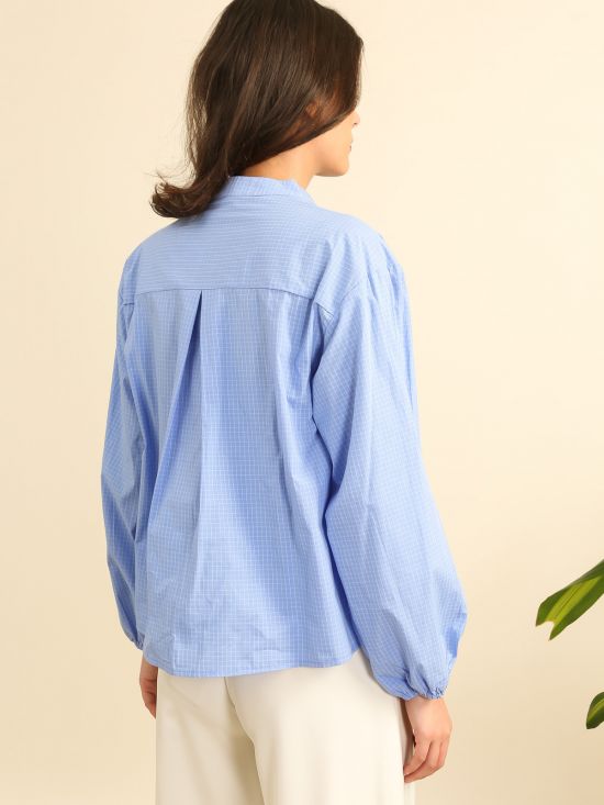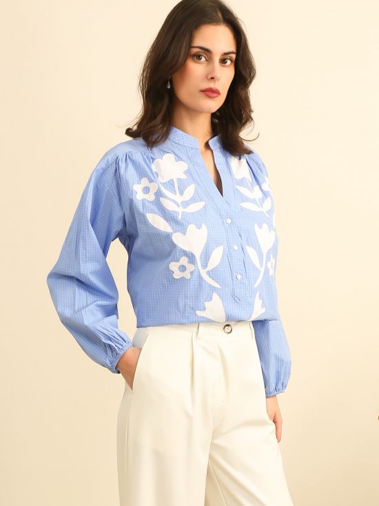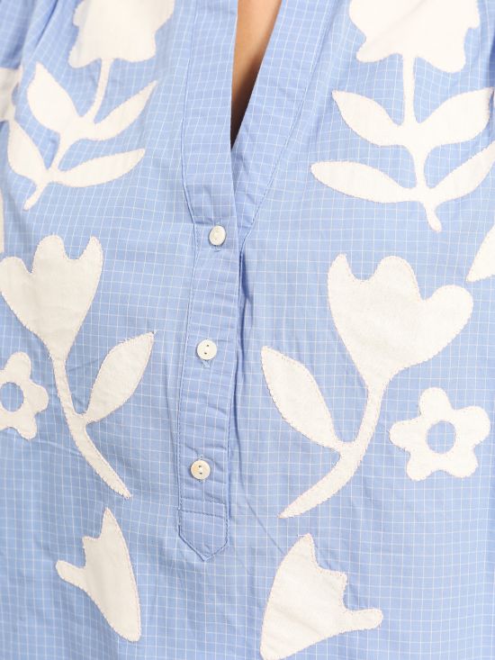 Chemise à carreaux col officier et motif floral Inspiration Studio