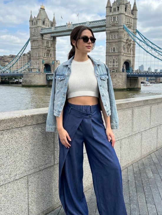 Pantalon large effet portefeuille façon jean uce Shop Collection