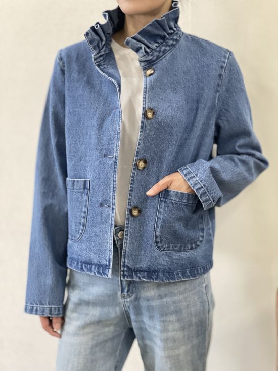 Collection 2026 Veste jeans col victorien Bleu Ref. 65264 59.00 € S M L Guide des tailles Ajouter au panier Description Partager cet article
