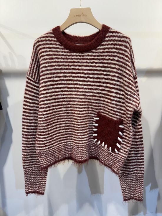 Pull rayé col rond manches longues Cerise Blue.