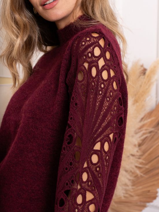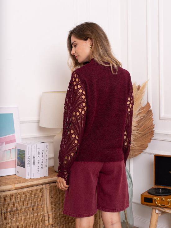 Pull col montant manches longues en guipure Kilky