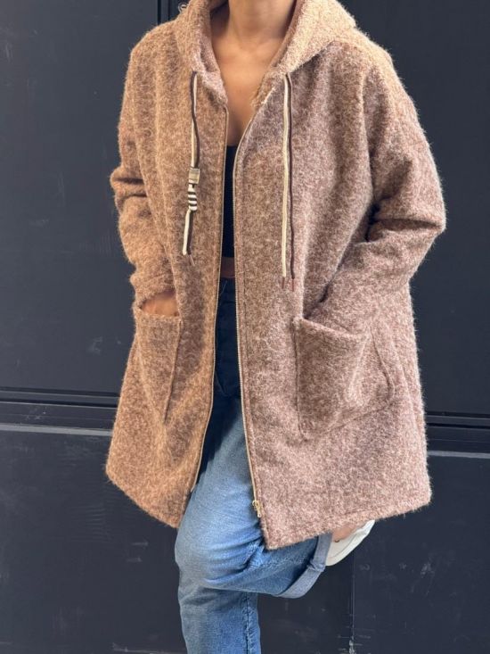Manteau 3/4 à capuche façon laine bouillie Carla Giannini