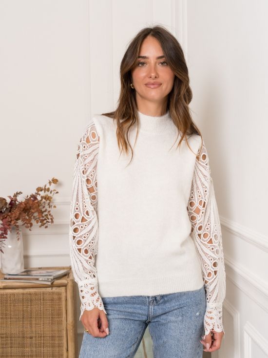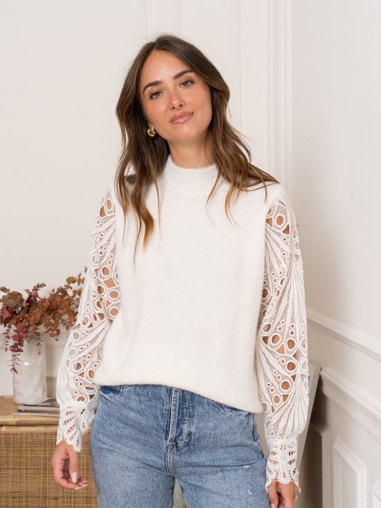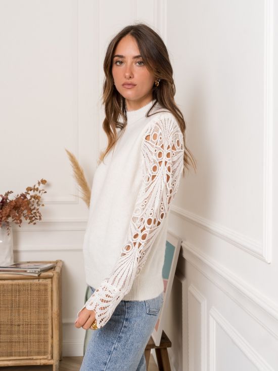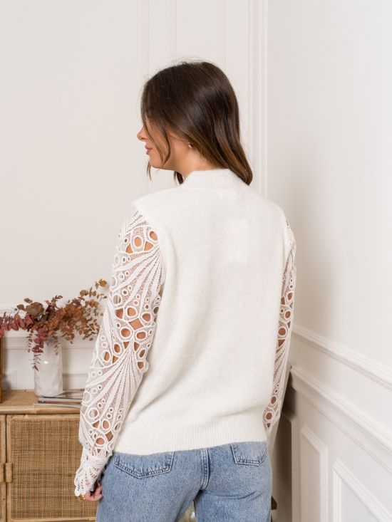 Pull col montant manches longues en guipure Kilky