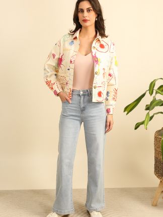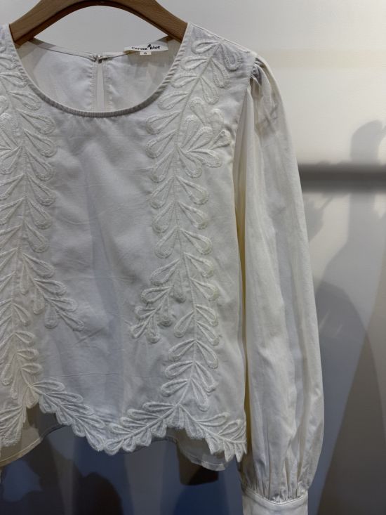 Blouse courte brodée encolure ronde Cerise Blue.