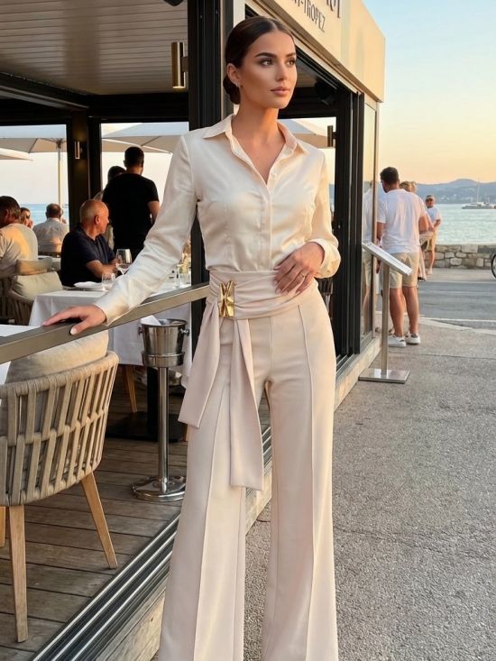 Pantalon large avec pince bijoux à la ceinture Luce Shop Collection