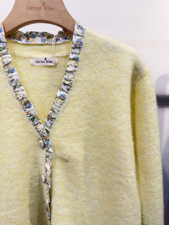 Gilet col V bords col, boutonnières et bas de manches imprimés Liberty Cerise Blue