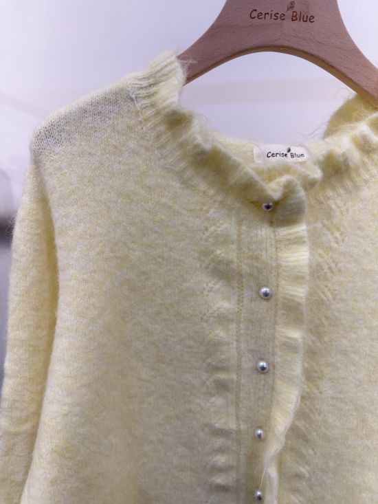 Gilet maille moelleuse col volanté manches longues Cerise Blue.