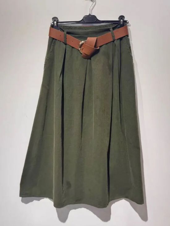 Jupe longue évasée en velours côtelé avec ceinture Feelook.