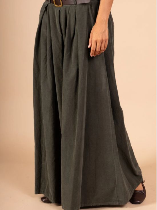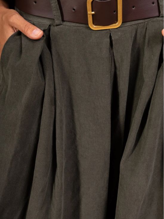 Jupe culotte longue en velours côtelé fin avec ceinture Pepouz.