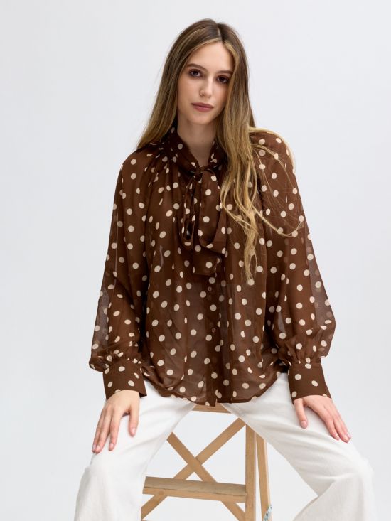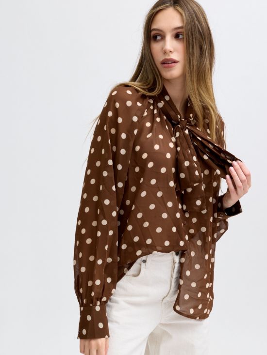 Chemise en voilage à pois col noué Luce-Shop Collection.
