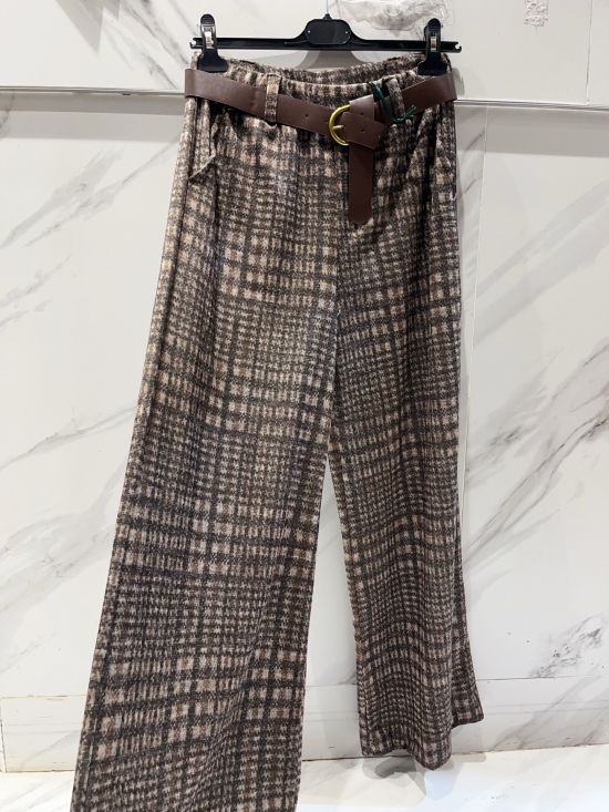 Pantalon doux et large à carreaux avec ceinture Miss Carla