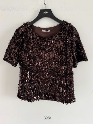Top fluide en voile bordé de velours et sequins Issyma