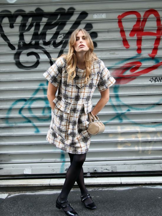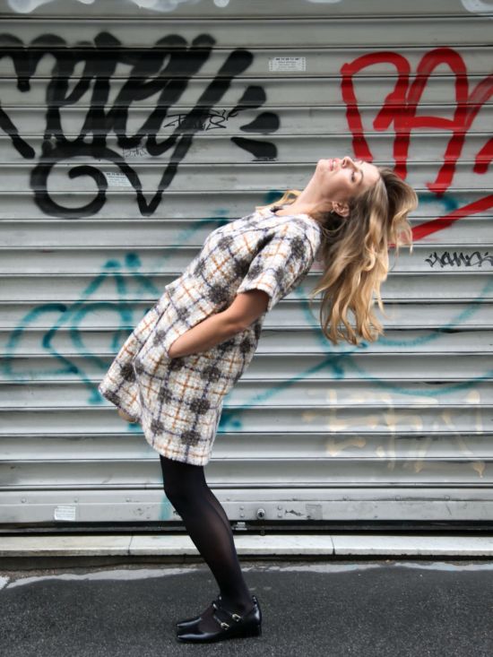 Robe rétro 70's à carreaux manches courtes Hippocampe
