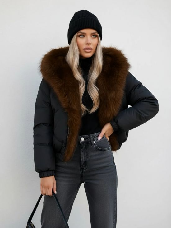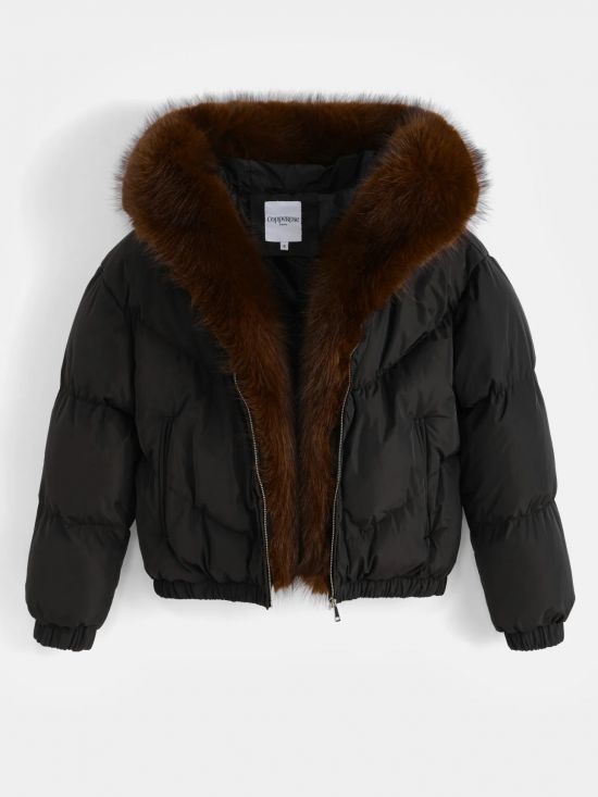 Doudoune cropped avec capuche et fourrure amovible Luce-Shop Collection