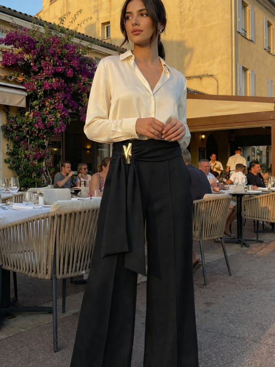 Pantalon large avec pince bijoux à la ceinture Luce Shop Collection