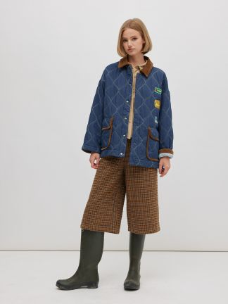 Chemise vichy col frou-frou plastron brodé de fleurs