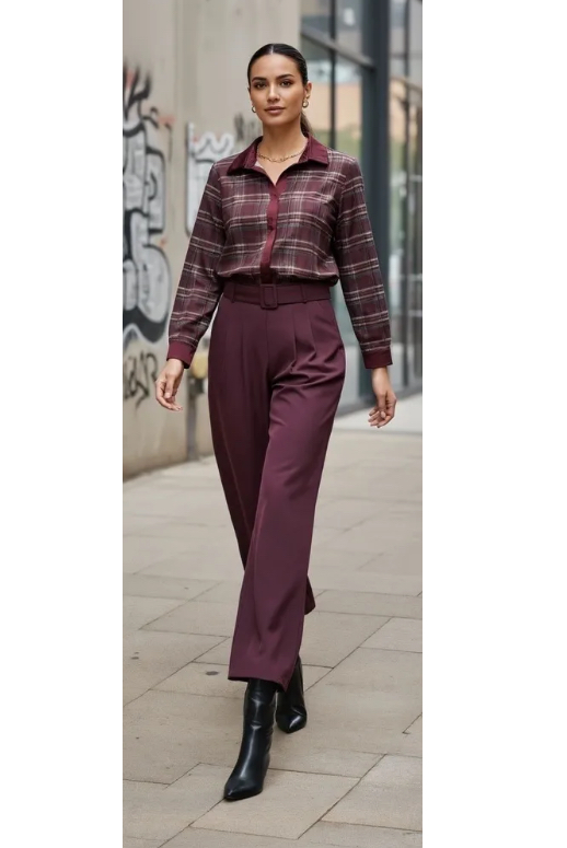 Pantalon large à plis avec ceinture recouverte Luce Shop Collection
