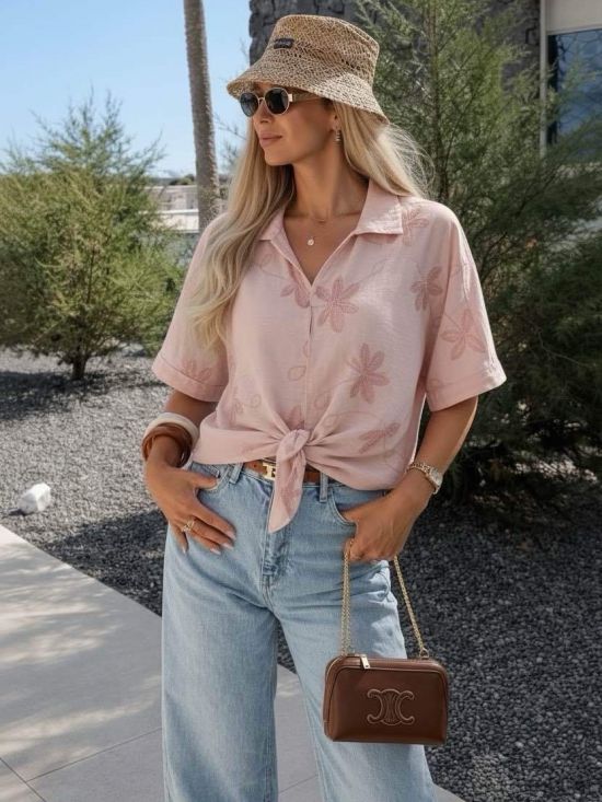 Blouse unie brodée manches courtes Luce-shop Collection.