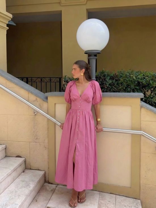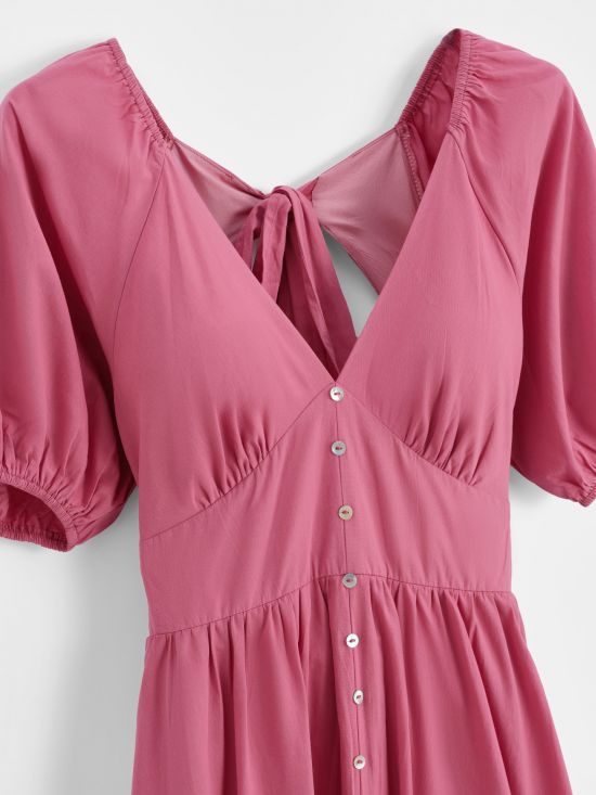 Robe longue boutonnée dos-nu manches courtes ballon Copperose
