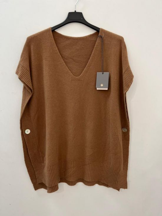 Pull oversized col V sans manches ouverts sur les côtés fermés par un bouton nacré Sugar Babe.