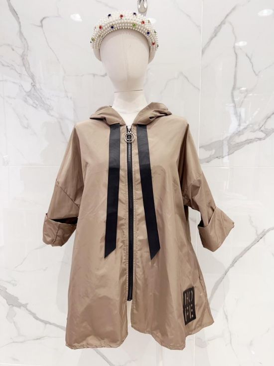 coupe-vent oversize à capuche longueur trois-quarts