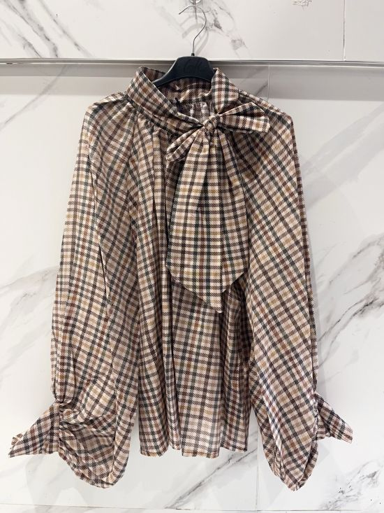 Chemise oversized col noué imprimé pied de poule Carla Giannini
