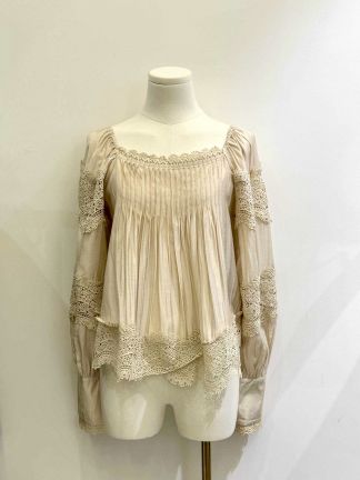 Blouse col V avec plis plats autour de l'encolure et poignets chemisiers