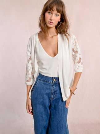 Top bi matière manches en dentelle