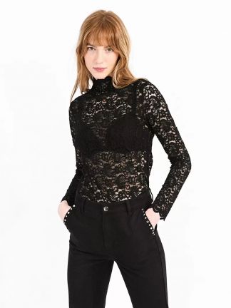 Top bi matière manches en dentelle