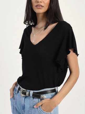 Pull col V gansé chaînettes dorées manches longues
